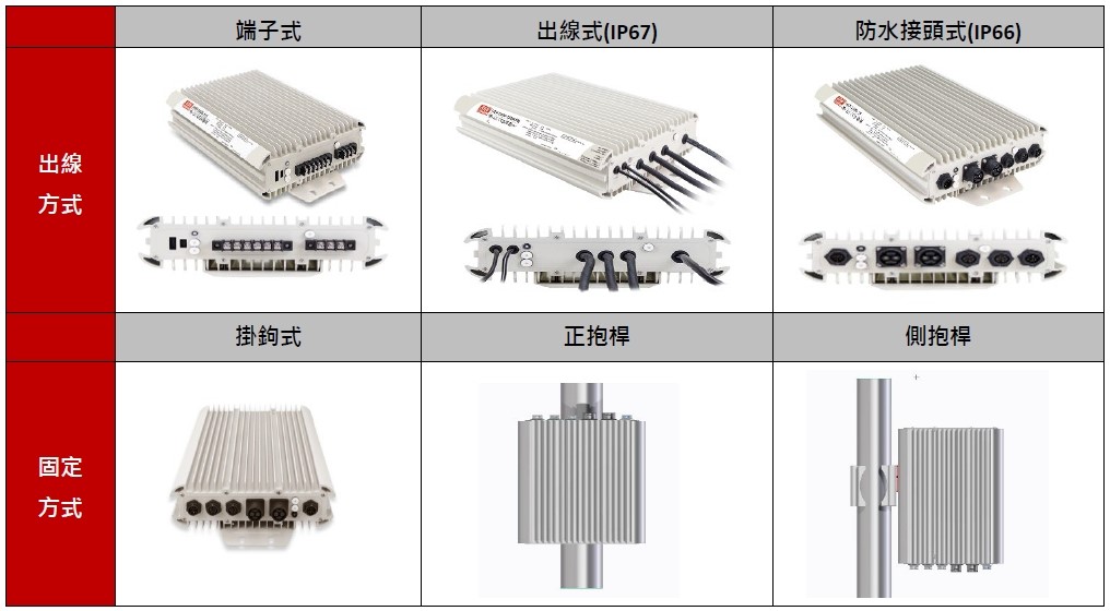 HEP-2300系列包含四種不同輸出電壓55V/115V/230V及380V,適用于高粉塵或室內(nèi)外儀器設(shè)備,輸出電壓可透過(guò)三種方式調(diào)整,包含內(nèi)建可變電阻方式、透過(guò)可程序化(PV/PC)功能,亦可透過(guò)數(shù)字通訊如CANBus/PMBus/MODbus等,對(duì)輸出電壓及電流做調(diào)整,方便結(jié)合人機(jī)接口做系統(tǒng)整合與控制使用。HEP-2300系列除提供不同的輸出電壓,亦提供三種接線方式,包含傳統(tǒng)端子式、防水出線式及防水接頭式;同時(shí)也提供不同固定方式如掛鉤式,正抱桿或側(cè)抱桿等方式。